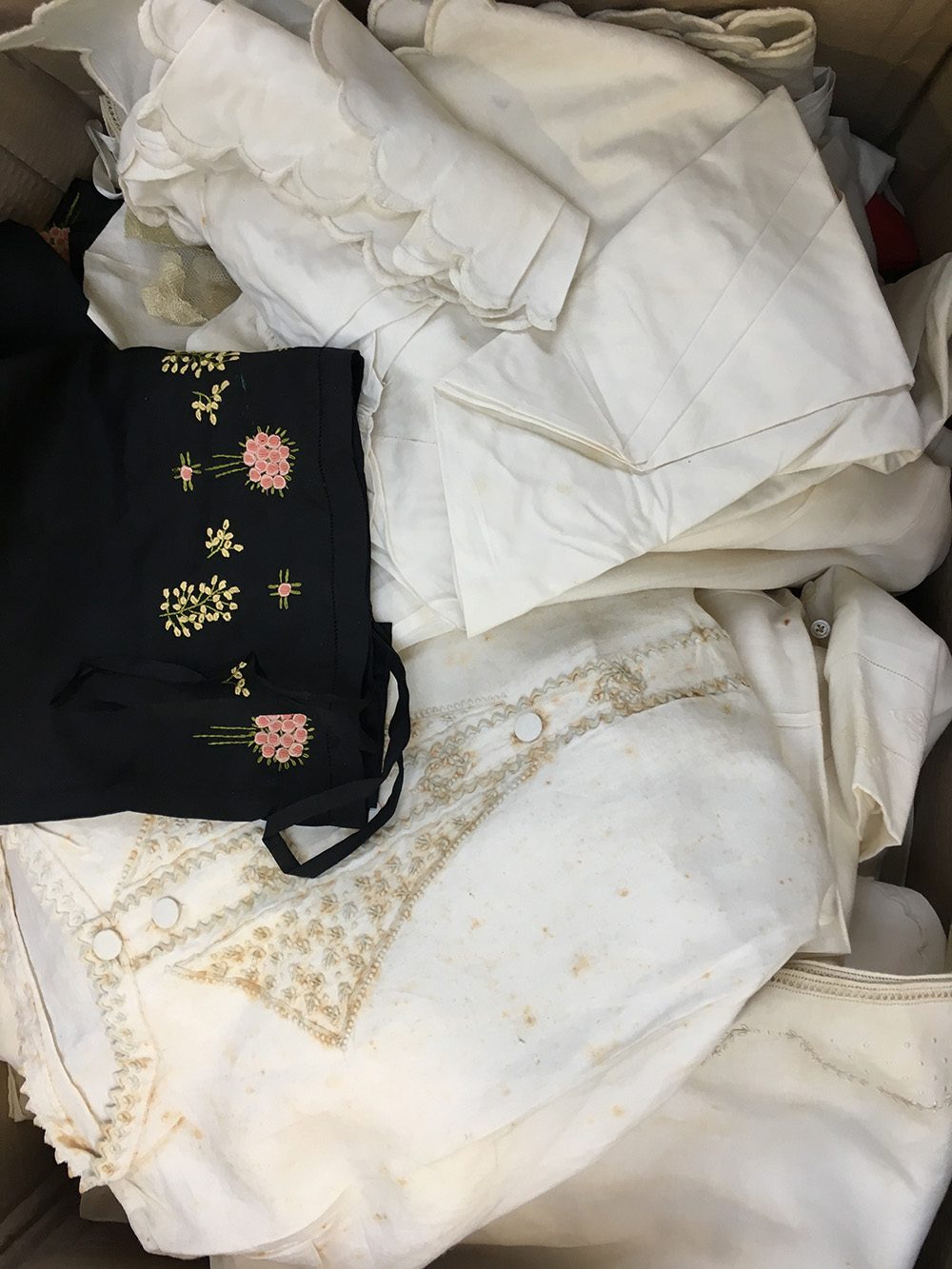 Cartone contenente numerosi tessuti di diverse fogge e dimensioni (difetti)
