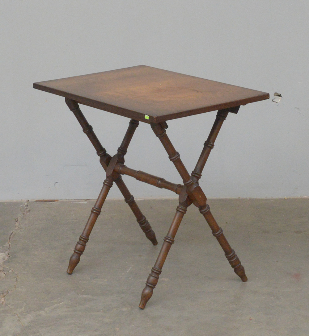 Tavolino rettangolare con gambe incrociate tornite (cm 60x59x44)