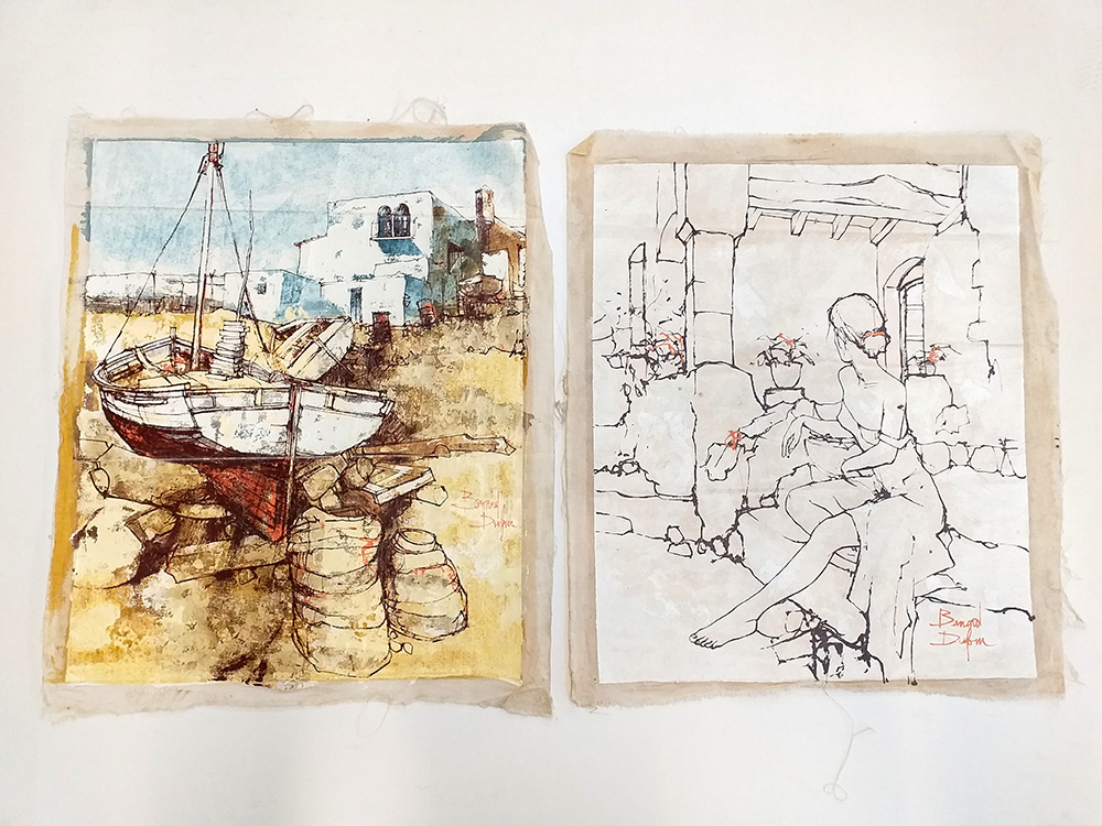 Lotto composto da due opere su tela degli anni '80 di soggetto diverso firmate Bernard Dufour (cm 50x43). (Difetti).