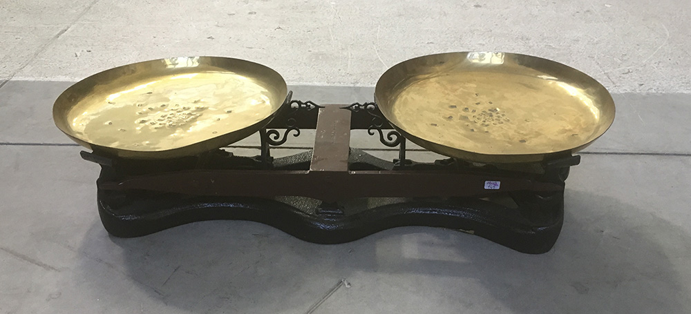 Bilancia in ghisa verniciata con piatti in ottone, portata da 20 Kg (difetti)