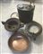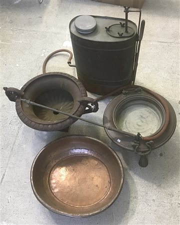 Lotto composto da una irroratrice, due fioriere e un catino in ferro e rame (difetti)