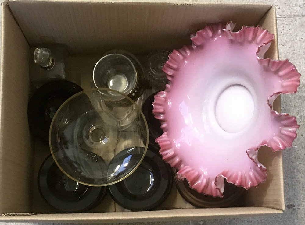 Cartone contenente numerosi oggetti in vetro per usi e di fatture differenti (difetti)