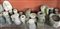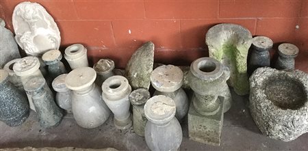 Gruppo di porzioni di elementi decorati da giardino in marmo, pietra e cemento (difetti e mancanze)