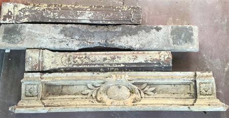 Antico camino in cemento con decori floreali e tracce di pittura bordeaux (cm...
