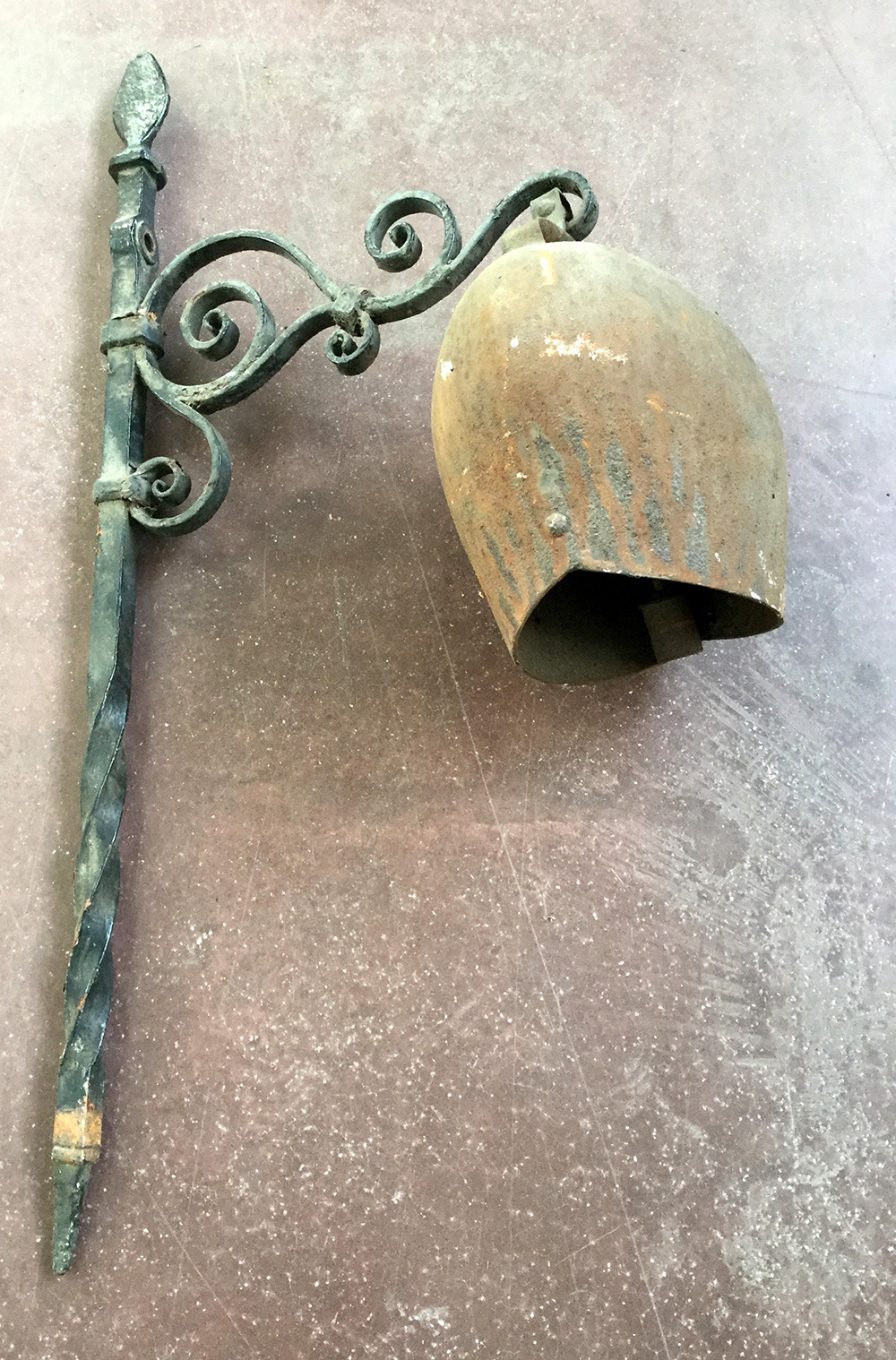 Campanaccio in ferro con asta di sostegno (h cm 80) (difetti)