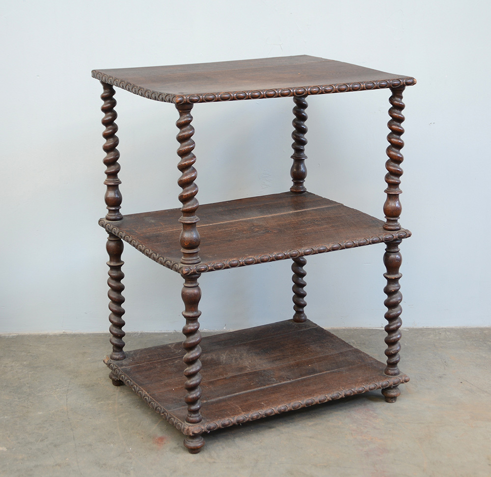 Etagere a tre ripiani con montanti a torciglioni (cm 70x93x55) (difetti)