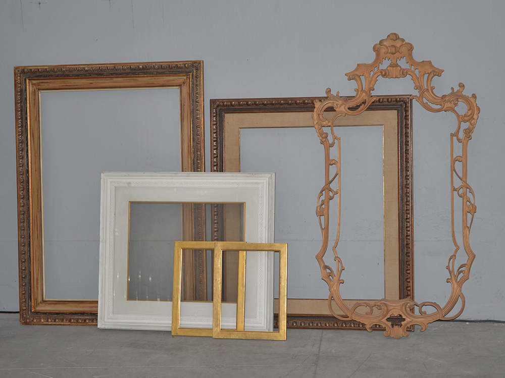 Lotto composto da sei cornici di forme, materiali e misure diverse (difetti)
