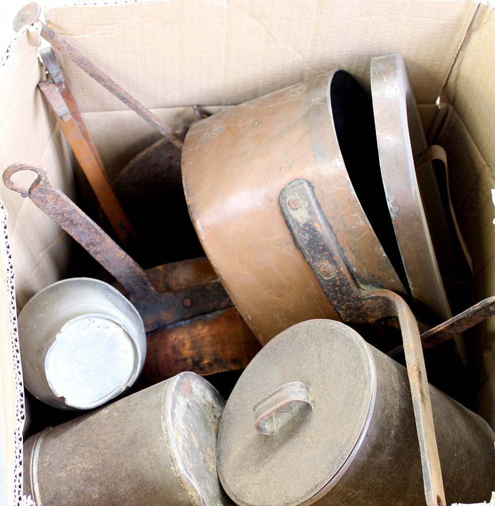 Cartone contenente numerosi oggetti in rame di diverso uso (difetti)