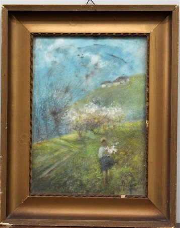 "Primavera" tecnica mista (cm 32x24) firmato in basso a destra, in cornice (difetti)