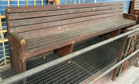 Panca da esterno in legno con seduta e spalliera a listelli (cm 345x100x55) (difetti e mancanze)