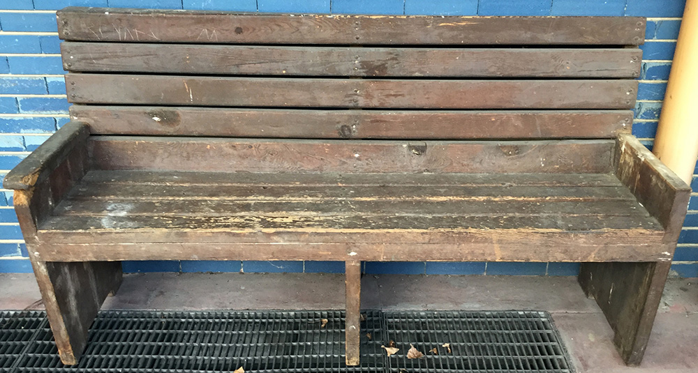 Panca da esterno in legno con seduta e spalliera a listelli (cm 180x100x56) (difetti e mancanze)