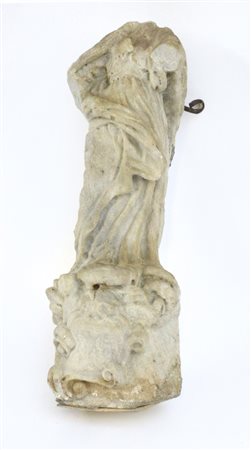 Antico frammento in marmo raffigurante figura con panneggio (h. cm 40) (mancanze)