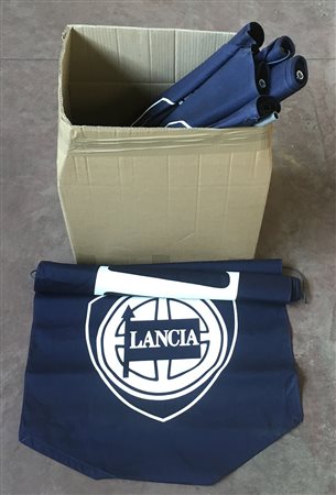 Cartone contenente gonfaloni e bandiere della casa automobilistica Lancia...