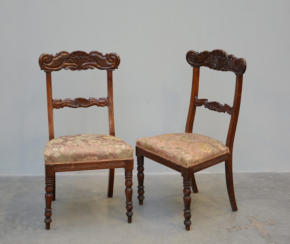 Coppia di sedie in legno scolpito (cm 46x91x37) (difetti)