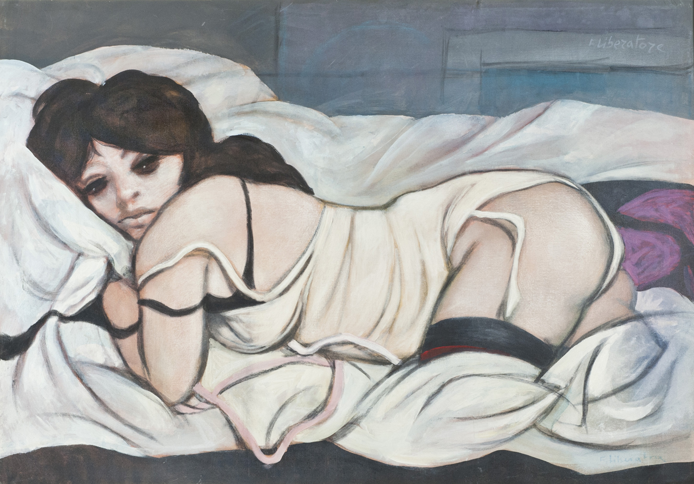 Fausto Maria Liberatore Figura distesa Olio su tela, cm. 70x100 Firmato in basso a destra. Autentica dell'Artista su foto.