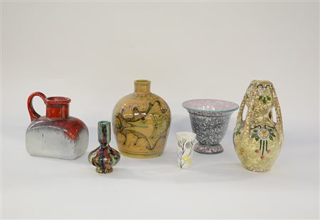 Lotto composto da sei vasi in ceramica smaltata di manifatture diverse. Secolo XX. (Misure diverse) (lievi difetti)