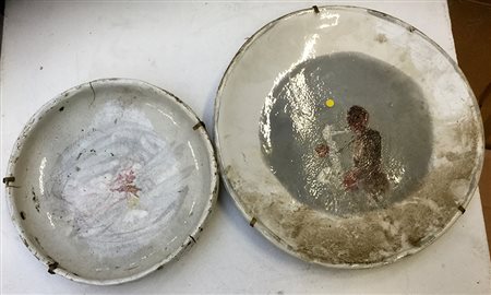 Ciotola e piatto in ceramica con decori diversi. Italia, secolo XX. (d max cm 27) (difetti)