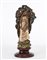 Polychrome terracotta sculpture with metallic lusters. Faenza, 1940s/1950s. Assembled on turned wooden base. Signed "MELANDRI" at the bottom left. (h 41 cm.) (defects and restorations)