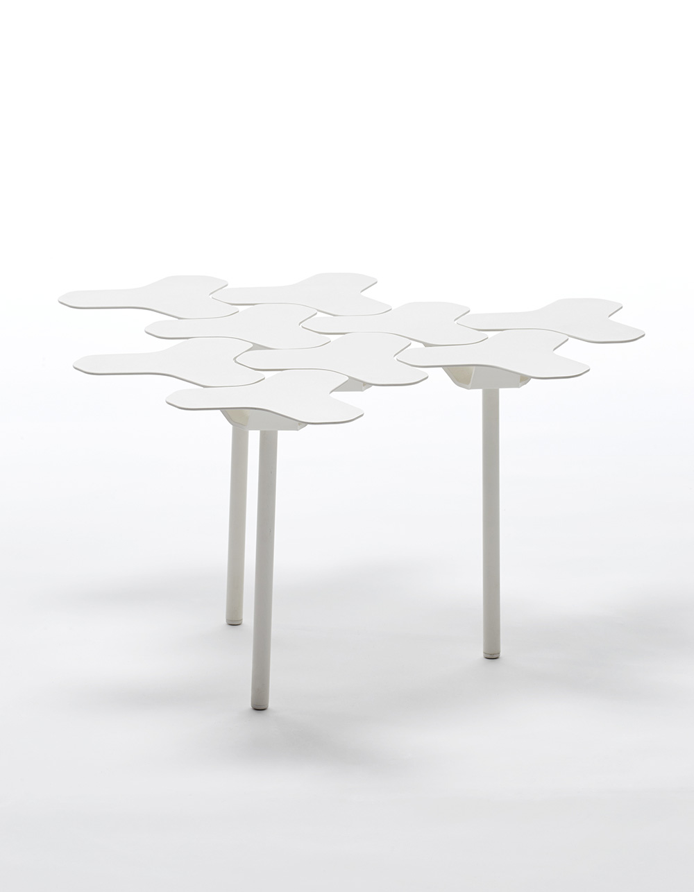 * Tavolino modello "Nanook T". Produzione Moroso, Milano, produzione recente. Struttura e piano in acciaio verniciato bianco. (cm 60x63x34)