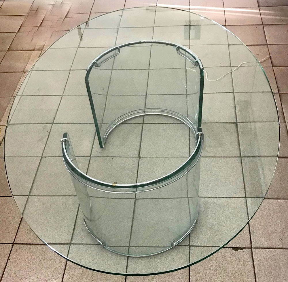 Rimadesio Tavolino da salotto in cristallo e tubolare metallico cromato....