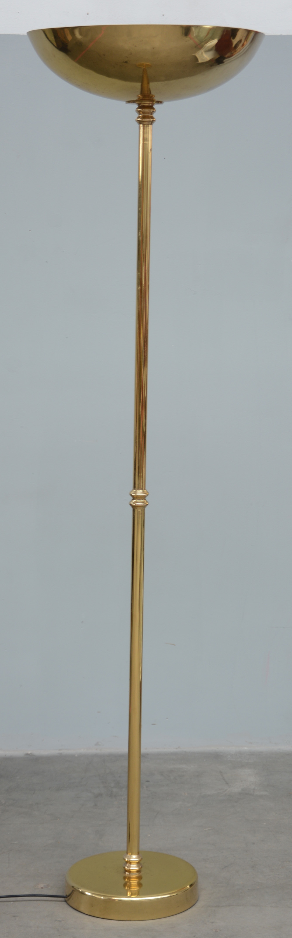 Lampada da terra alogena in ottone lucidato tipo luminator. Italia, anni '90/2000. (h cm 189) (lievi difetti)