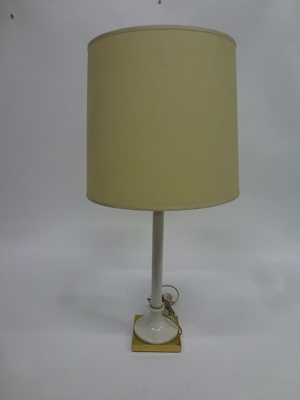 Lampada da tavolo in porcellana e ottone. Germania, secolo XX. (h cm 68) (lievi difetti)