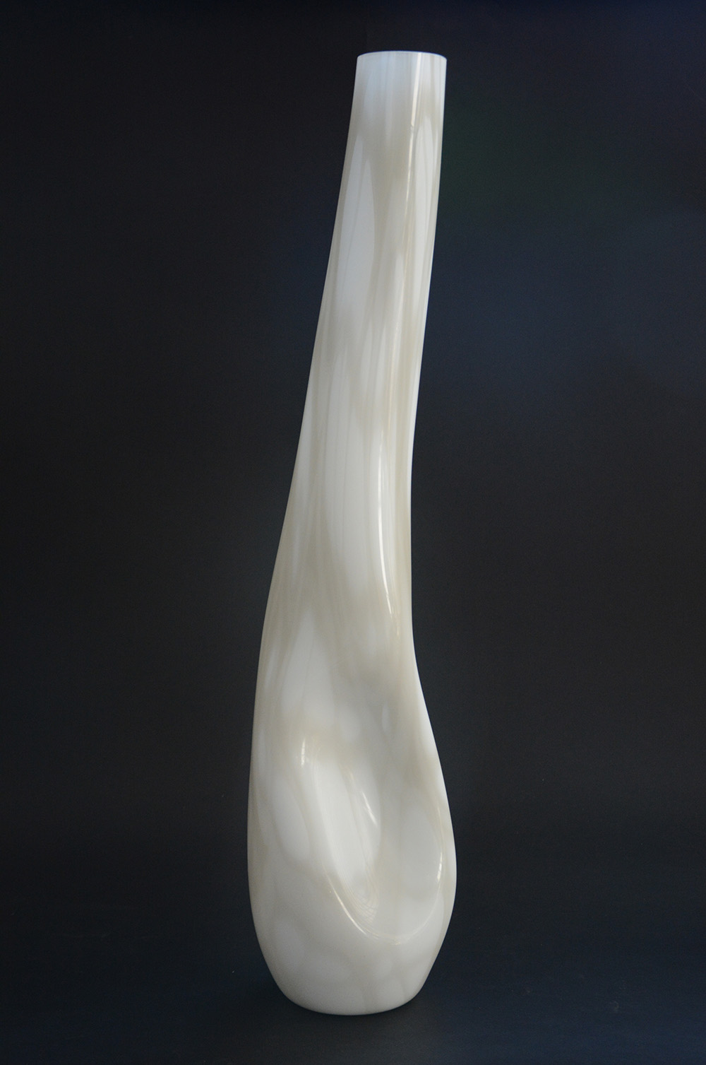 Grande vaso a forma allungata in vetro incamiciato a macchie incolore lattimo...