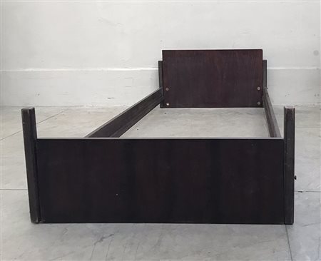 Letto ad una piazza in palissandro indiano massello e impiallacciato. Italia, 1950ca. (difetti)