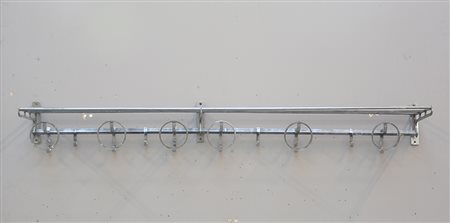 Cappelliera / appendiabiti in metallo nichelato. Italia, anni '30/'40. (cm 150x16x29,5)