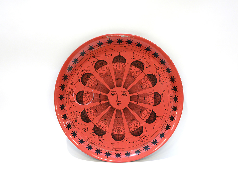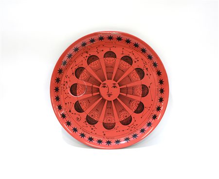 Fornasetti, Milano "Fasi del sole"Piatto in metallo laccato rosso e nero...