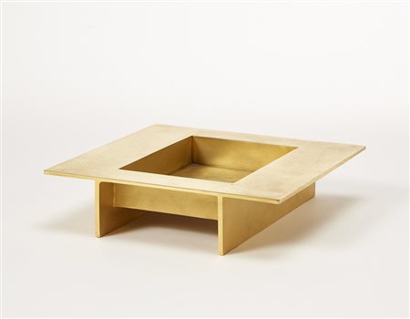 Posacenere in metallo dorato, ispirato al modello "3011A Putrella" di Enzo Mari per Danese. Esecuzione italiana, anni 60-70. (cm 20x5x19,5)