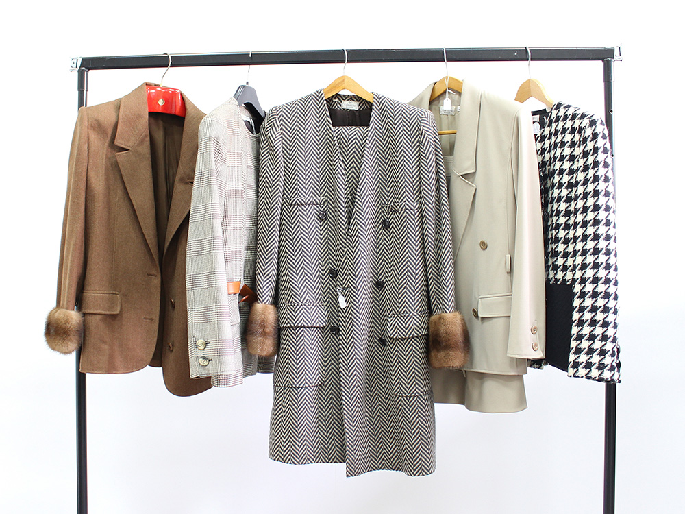 Lotto di tre tailleurs e due giacche di diversi colori e fatture (tg. differenti) (difetti)