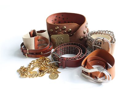Lotto di sei cinture di forme dimensioni e materiali differenti