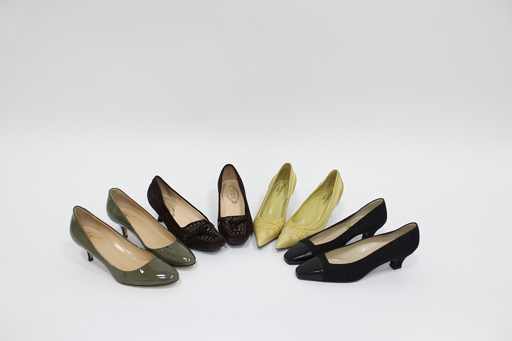 Lotto di quattro paia di scarpe, di cui tre décolté e un mocassino in diversi colori e materiali (tg. 38) (difetti e segni d'uso)