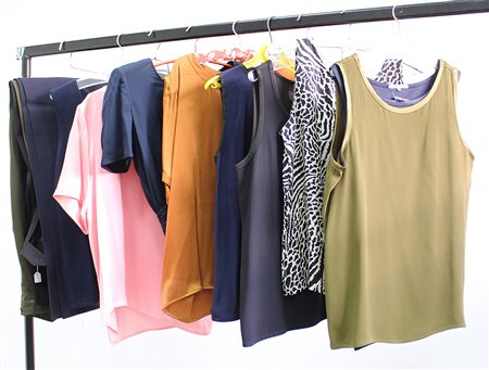 Lotto di 6 canottiere in vari materiali, tre maglie e tre pantaloni, di diversi colori e fantasie (taglie differenti) (lievi difetti)