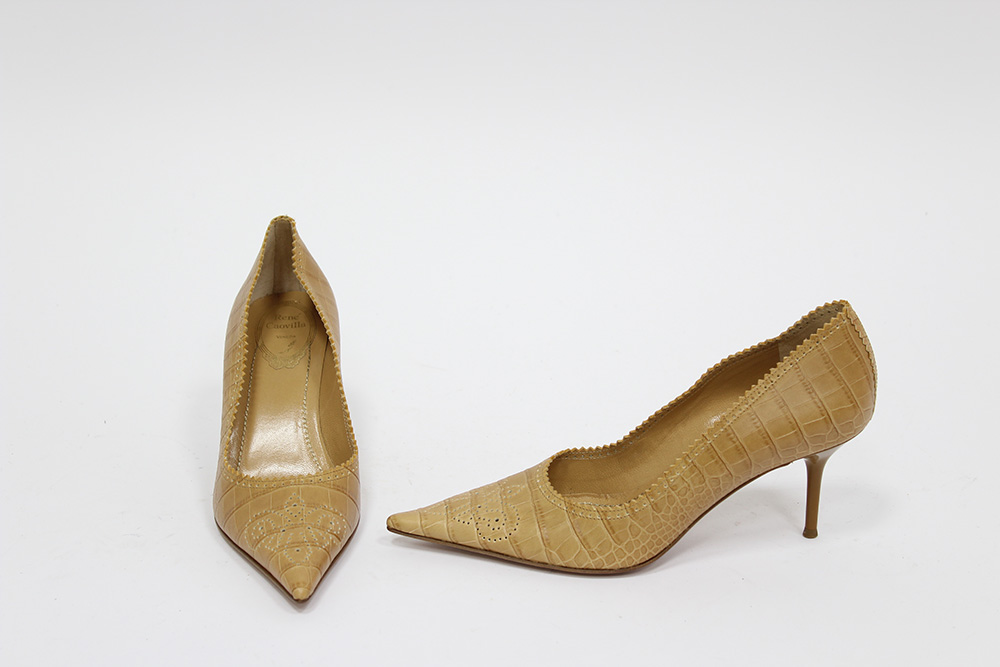 RENE' CAOVILLA Un paio di décoltés in pelle stampata simil cocco beige con...