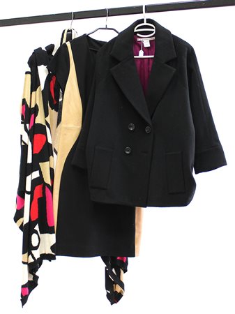 Lotto composto da un vestito in pelle e lana,un giaccone nero e un golfone multicilor in cachemere (tg. varie)