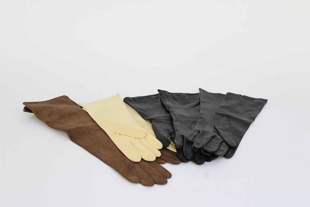 Lotto di quattro paia di guanti in pelle e camoscio di diversi colori (tg. 7) (segni d'uso)