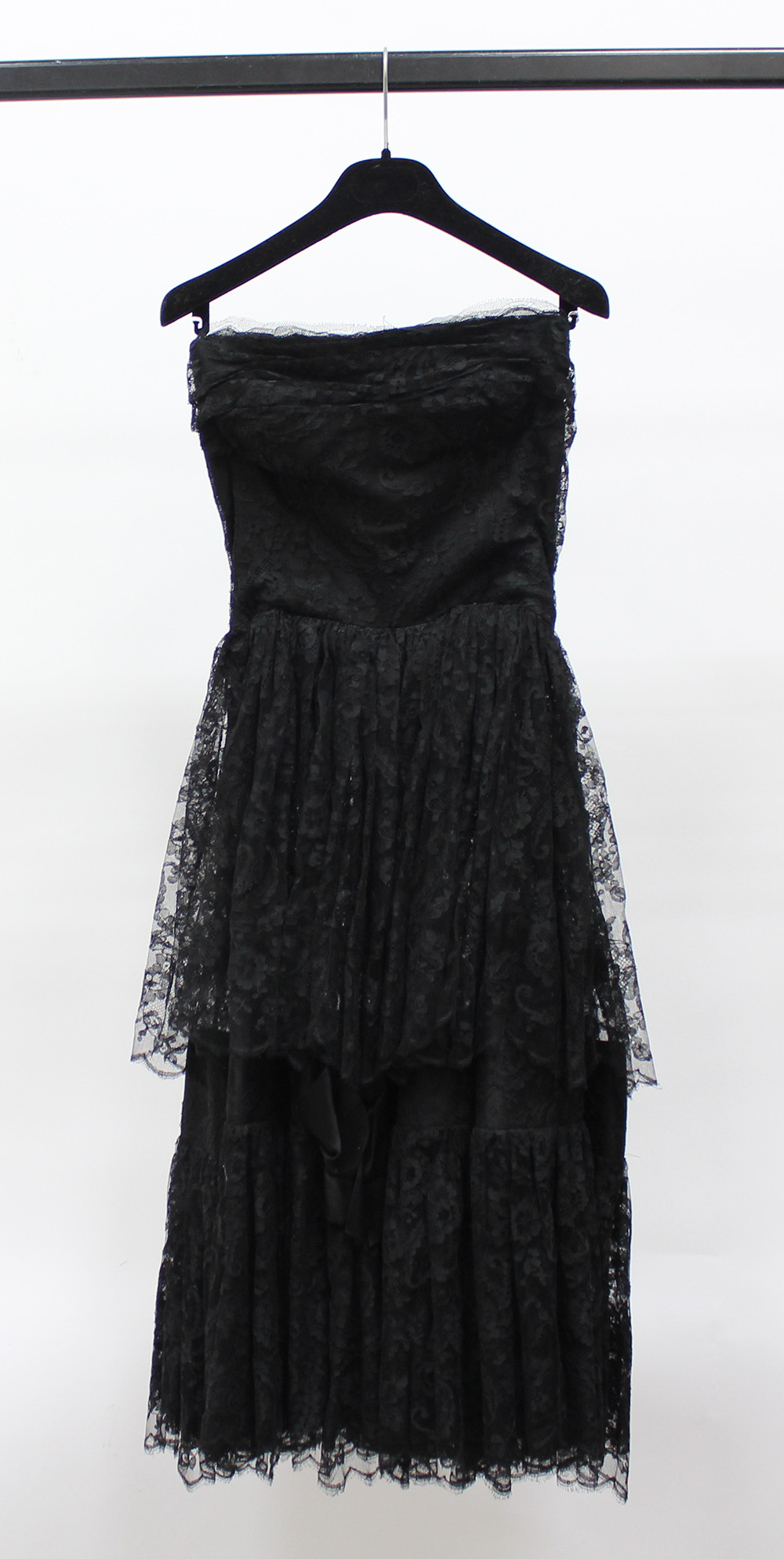 Vestito a balze in pizzo nero e raso di seta (tg. 42) (lievi segni d'uso)