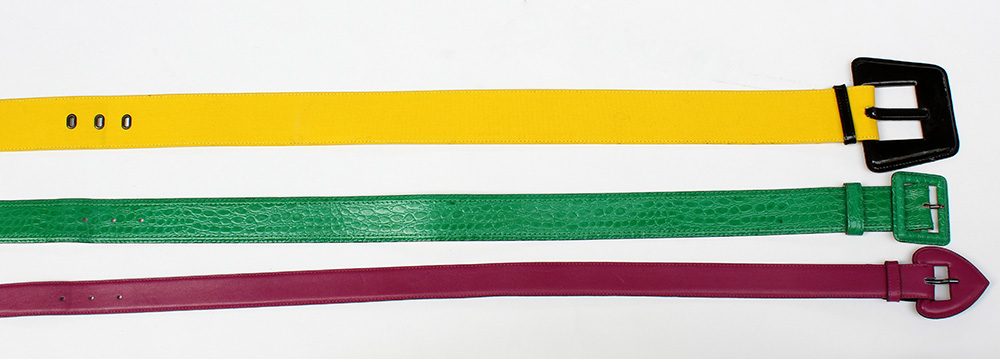 Lotto di tre cinture di materiali, forme, dimensioni e colori differenti (lievi difetti)