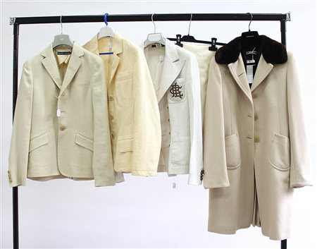 Lotto composto da un cappotto color burro, tre giacche e un pantalone palazzo avorio (tg. varie) (lievi segni d'uso)