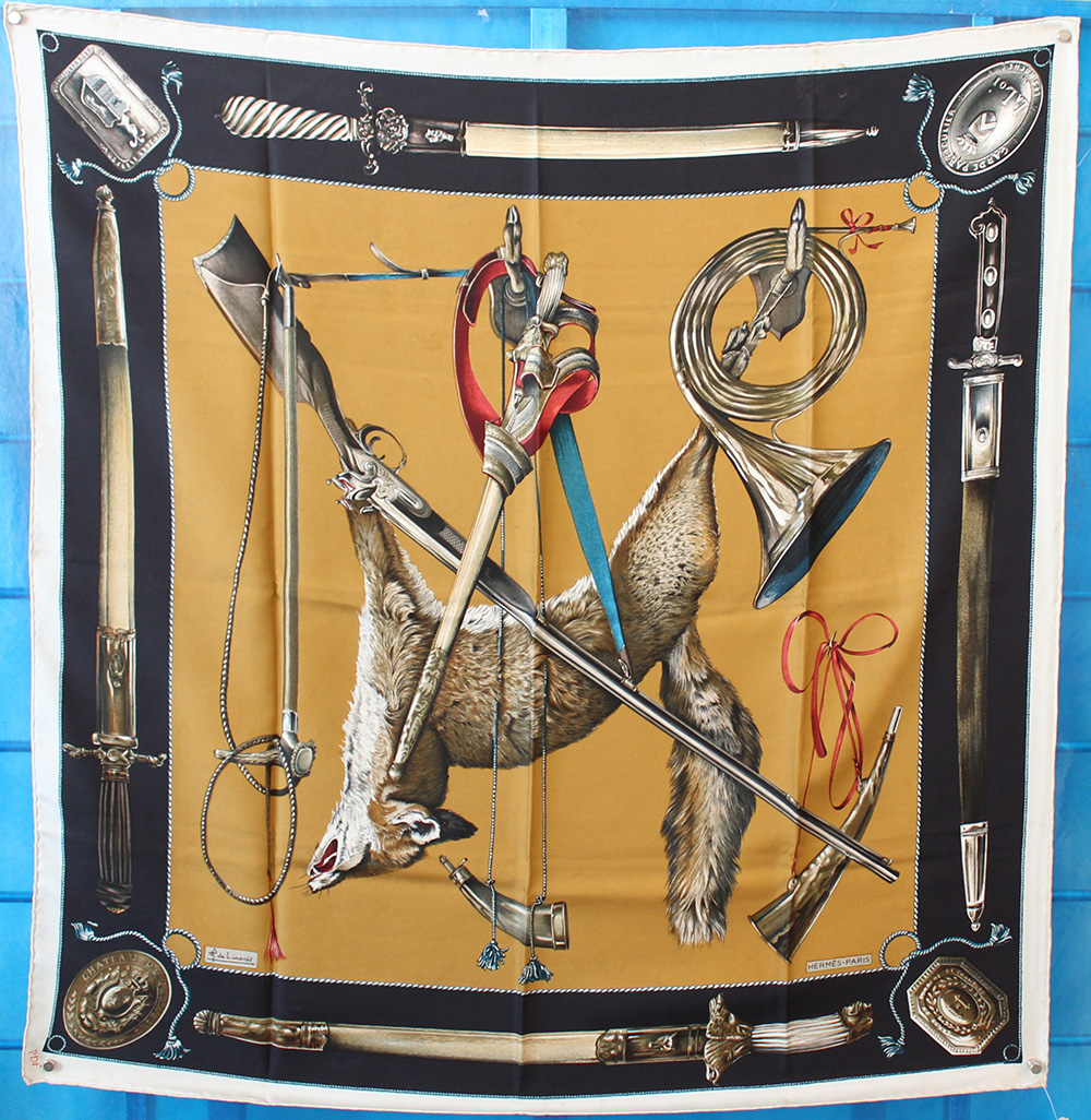 HERMÈS Foulard in seta " Le Renard" Henri de Linarès 1967, nei toni del...