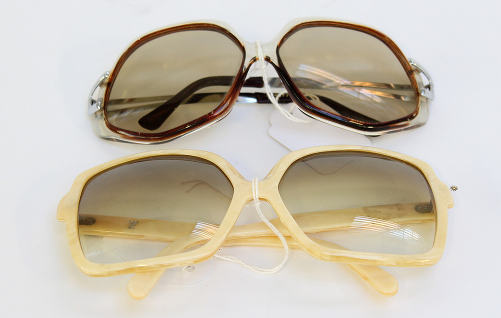 Lotto di due paia di occhiali da sole di cui uno in galalite simil avorio (lievi segni d'uso)