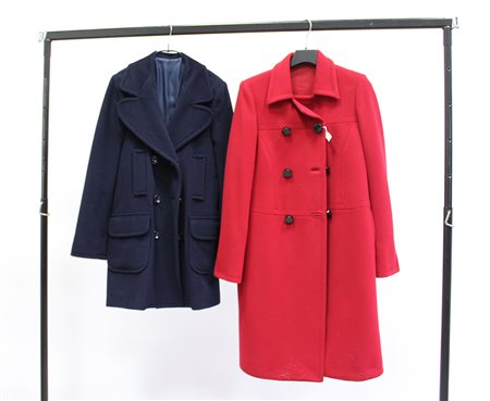Lotto di due cappotti, uno doppiopetto rosso e uno 3/4 blu (tg. 42)