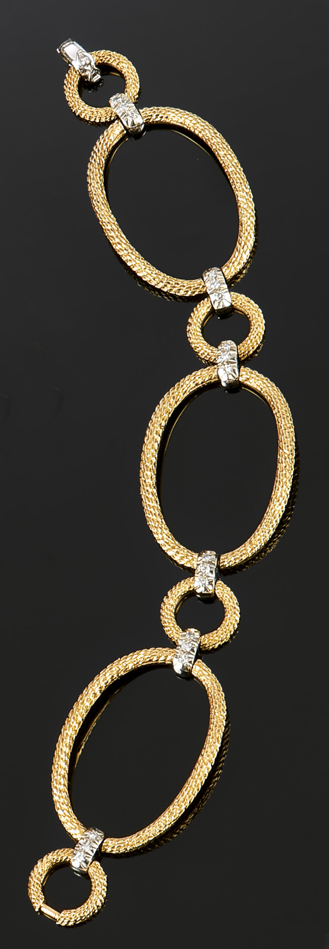 BRACCIALE Bracciale in oro giallo a maglie ovali raccordate da elementi in oro bianco con diamanti taglio brillante rotondo 8/8 Peso gr. 47,5