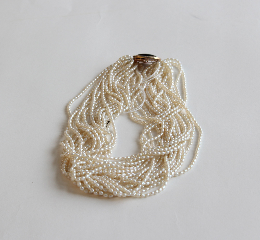 Colanna a venti fili di perle d'acqua dolce con chiusura in oro giallo...