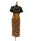 A calf-length dress entirely embroidered with rhinestones and sequins in the shades of brown, rust and yellow on black ground, short sleeves and neckline in mink (tg. 42)