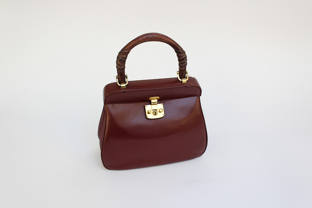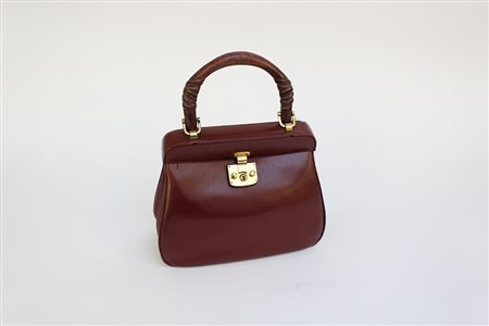 GUCCI Borsa a mano in pelle bordeaux, dettagli in metallo dorato,anni 50/60,...