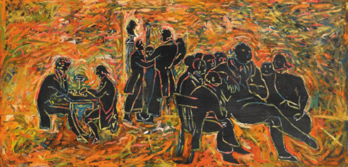 SANDRO CHIA N. 1946 INTRIGO CONTROLUCE oil on canvas. Executed in 1977 olio su tela cm 100x200 Eseguito nel 1977 L'opera è accompagnata da certificato su fotografia rilasciato dall'artista PROVENANCE André Simoens Gallery, Knokke Acquistato dall'attuale proprietario nella seconda metà degli anni Ottanta