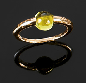 POMELLATO Anello in oro rosa, firmato "Pomellato" serie "M'ama non m'ama", con pietra verde al centro Peso gr. 3,2 Misura 10